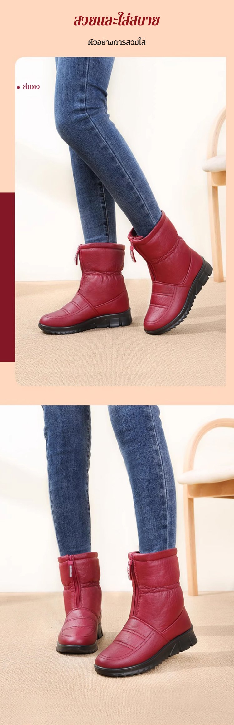 รองเท้าบูทลุยหิมะกันน้ำกันลื่นและรักษาความอบอุ่น